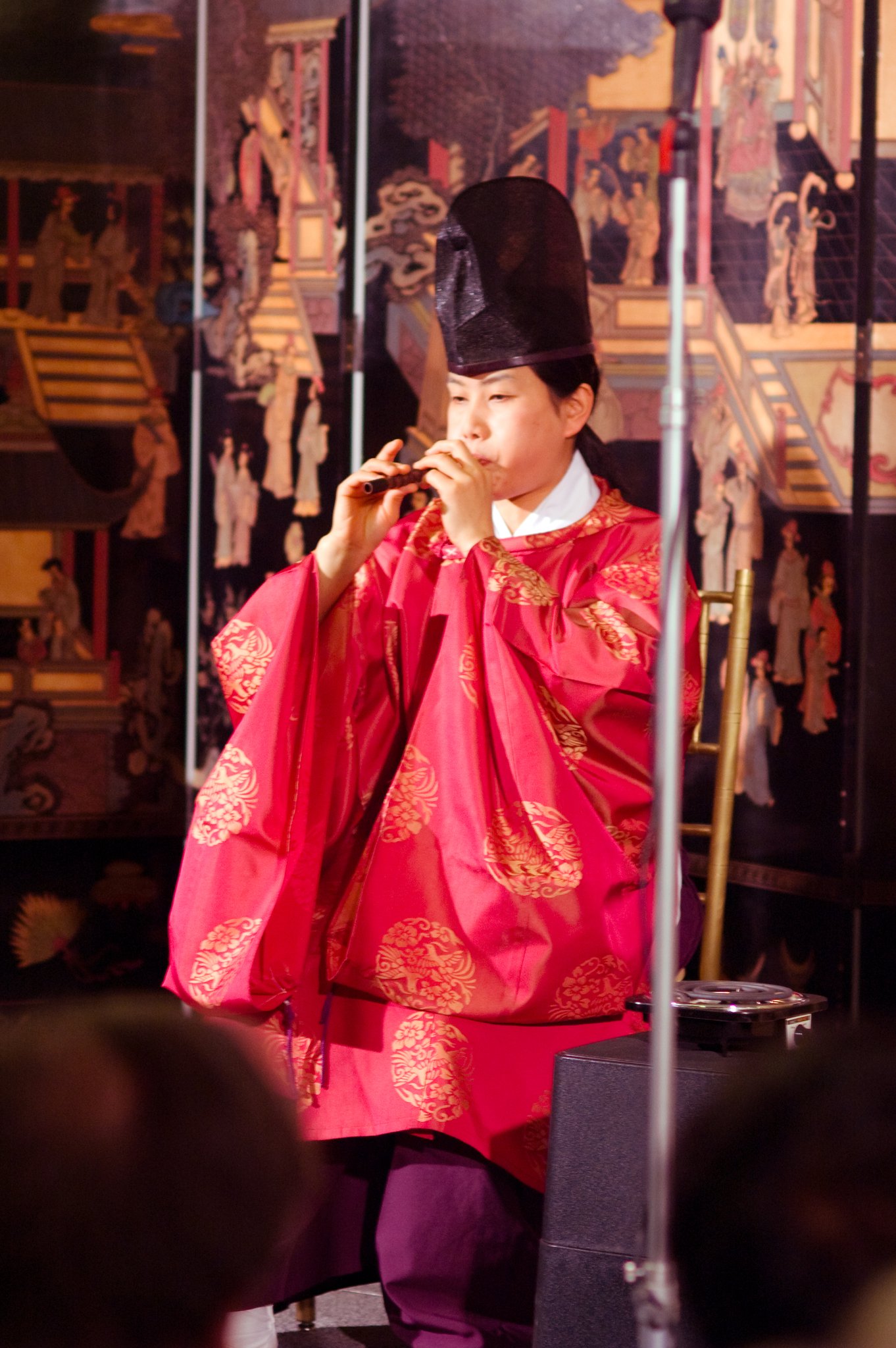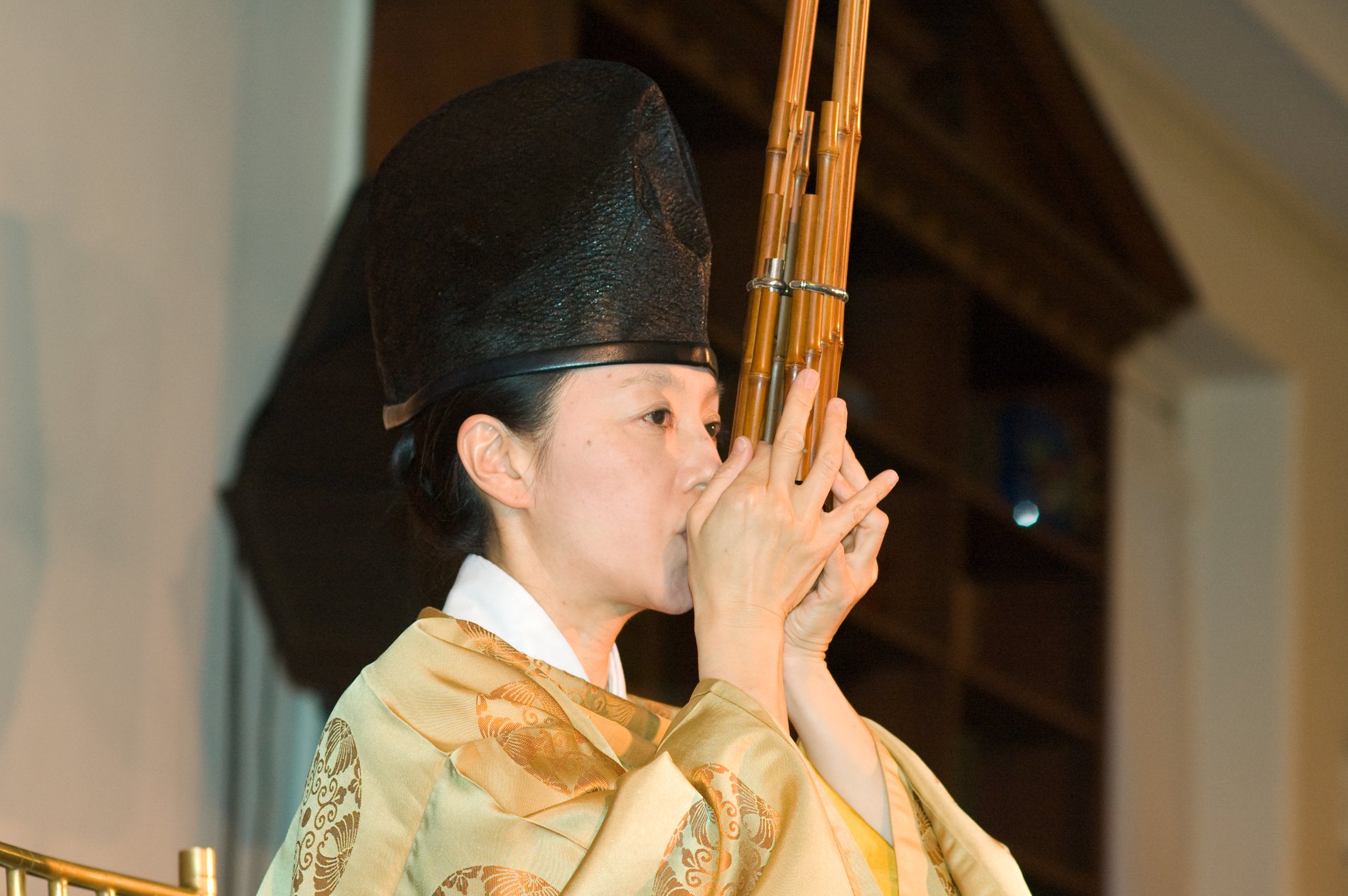 Until at least the 1960’s, due in great part to the Imperial Household Agency’s mission to preserve permanently musical forms that are more than a millennium old, gagaku musical traditions were transmitted as faithfully as possible to their originals. Over the past few decades, however, some imperially-trained musicians have become increasingly aware that preservation alone is not enough to keep an art alive. Pioneers such as former Imperial Household Music Department member Sukeyasu Shiba, who created the Reigakusha gagaku ensemble outside of the court, have held an important role in training new artists. His and other similar ensembles are impacting the present-day international musical scene with their performances of gagaku compositions, both classic and contemporary.