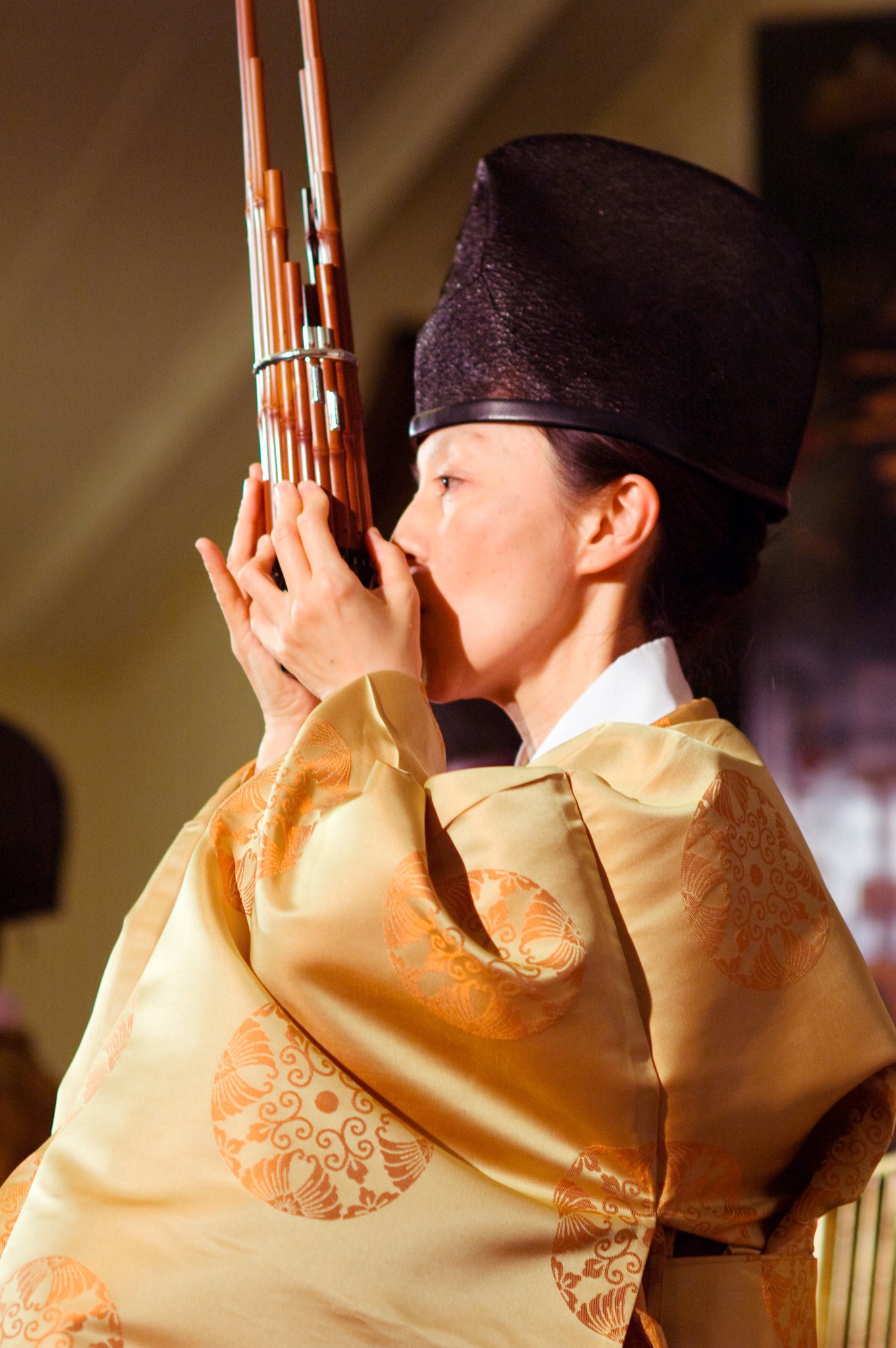 Visiting gagaku artists from Japan also lend their expertise by providing instruction for open instrumental workshops. Participants, including both beginners as well as professional musicians, gain hands-on experience with their choice of the three gagaku wind instruments: hichiriki, ryūteki, and shō.