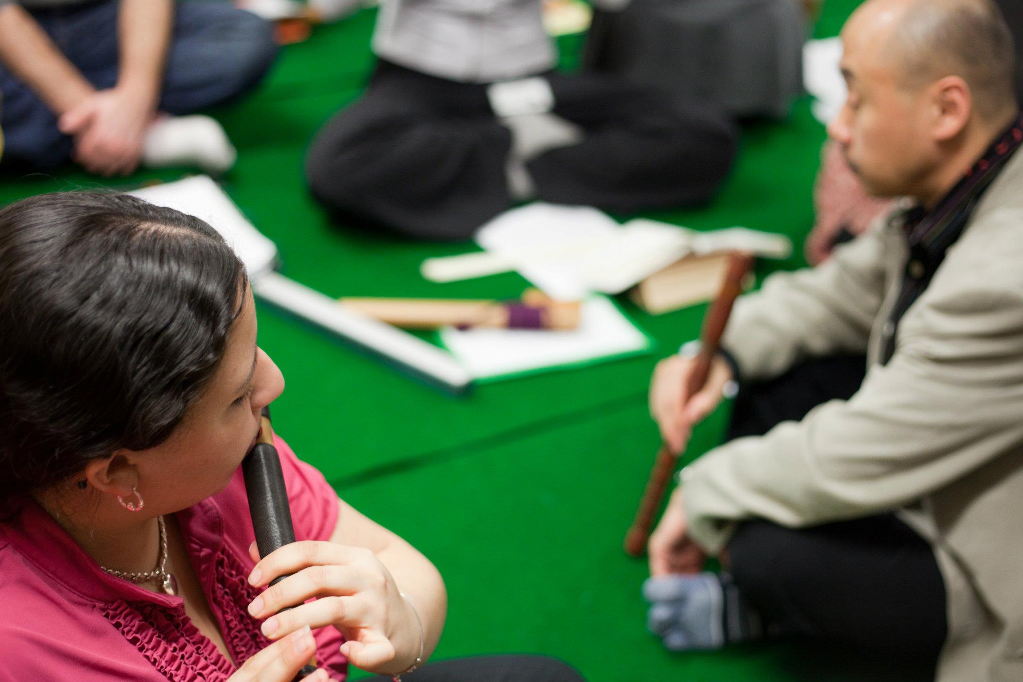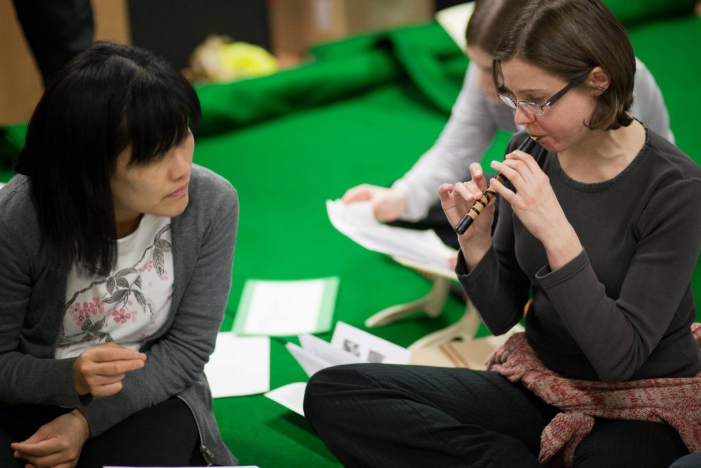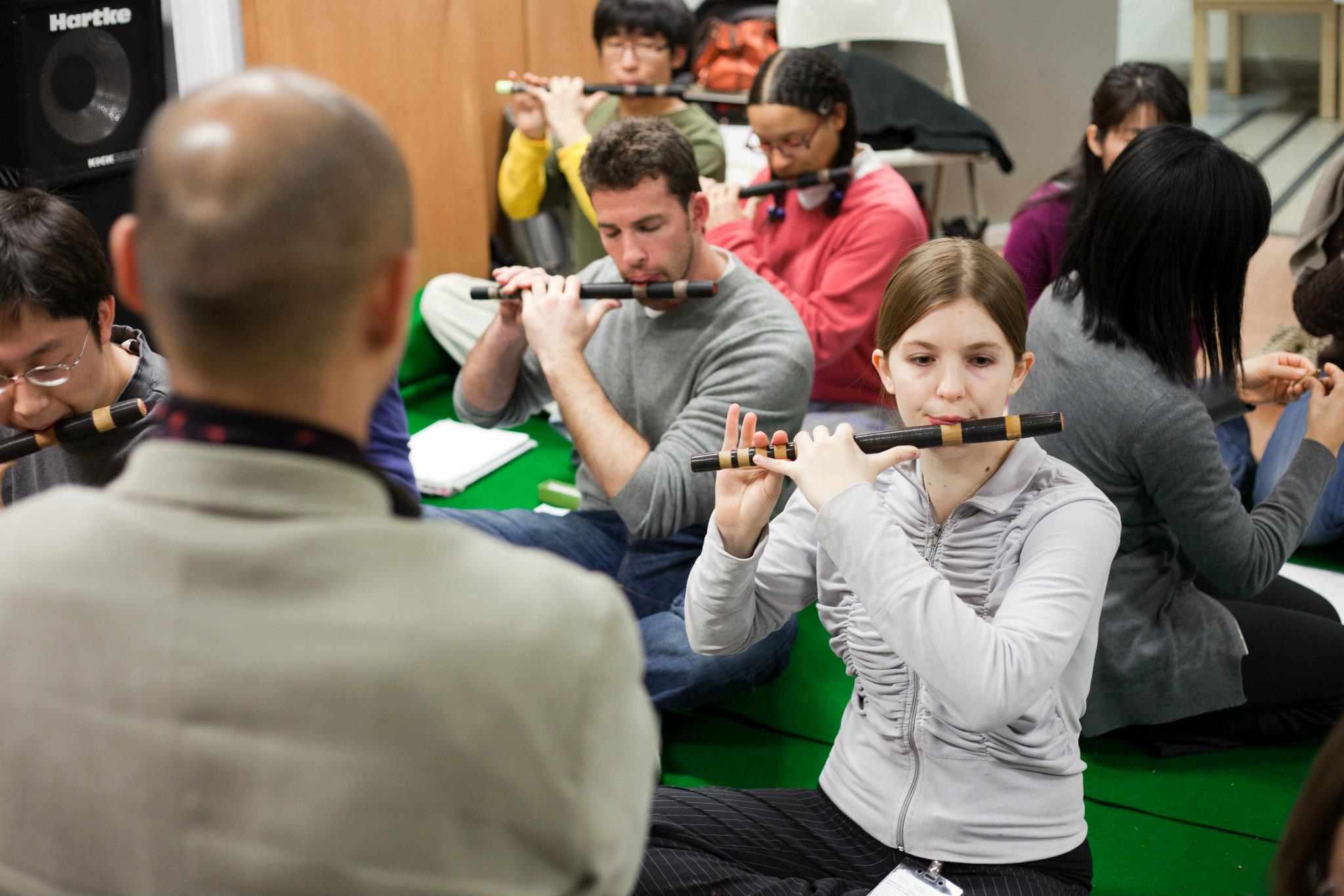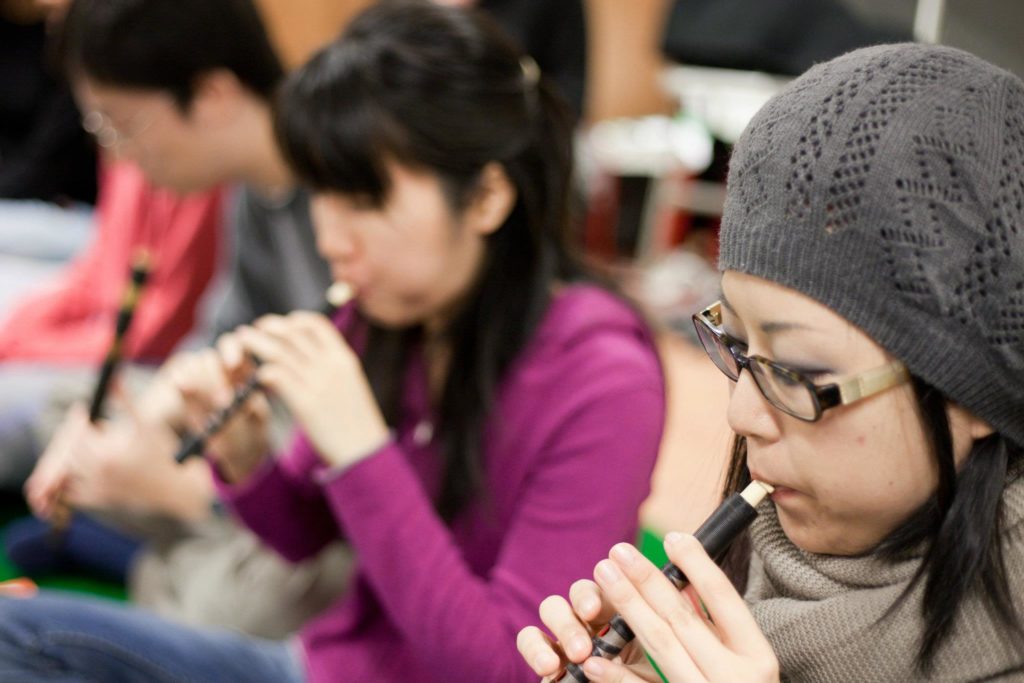 Visiting gagaku artists from Japan also lend their expertise by providing instruction for open instrumental workshops. Participants, including both beginners as well as professional musicians, gain hands-on experience with their choice of the three gagaku wind instruments: hichiriki, ryūteki, and shō.